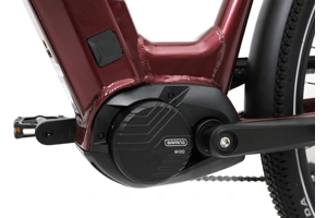 Středový motor Bafang M410 představuje ideální řešení pro horská a trekingová elektrokola. Díky jmenovitému výkonu 250 W a točivému momentu až 90 Nm poskytuje plynulou a silnou podporu i v náročném terénu a pro svoji nízkou hmotnost a vysokou účinnost je optimalizován pro sportovní jízdu. Systém také využívá kombinaci snímače kadence a torzního senzoru, což pozitivně ovlivňuje přirozený jízdní projev a kvalitu asistence.