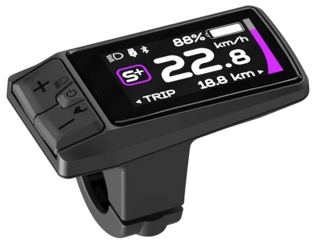 Zobrazuje všechny důležité informace jako aktuální rychlost, stav baterie, stupeň přípomoci i ujetou vzdálenost a umožňuje snadné ovládání pomocí zabudovaného ovladače.